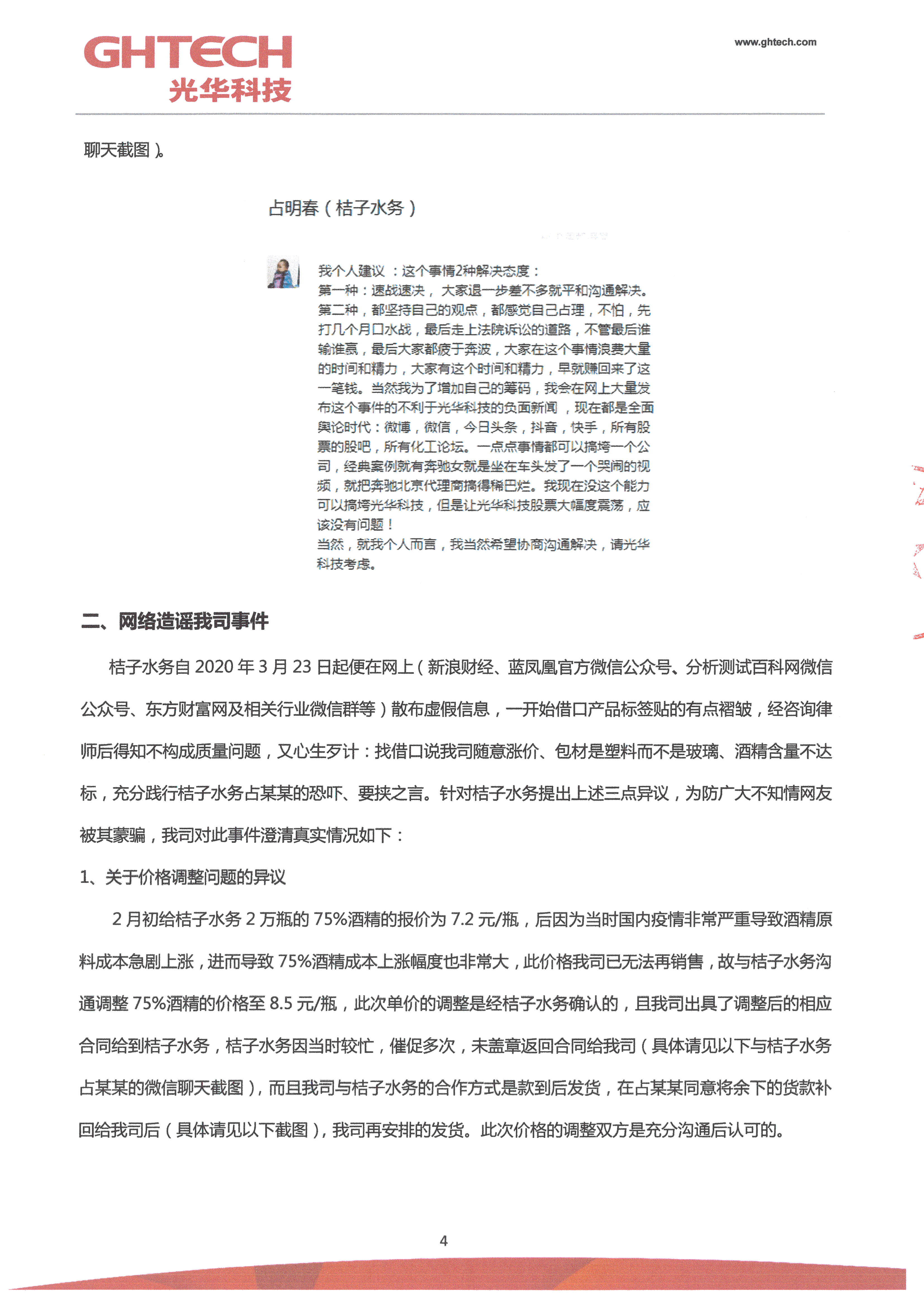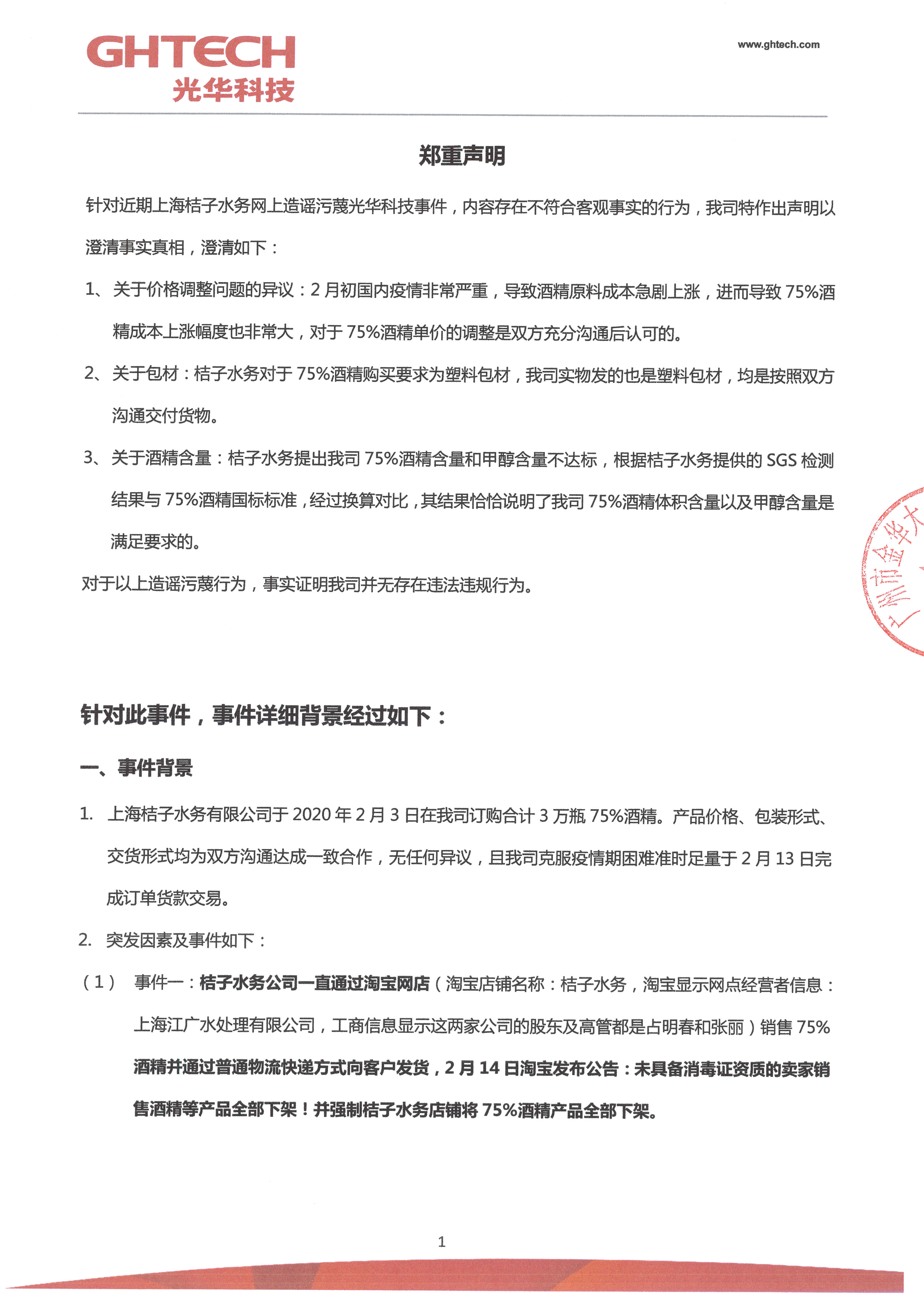 針對近期上海桔子水務網(wǎng)上造謠污蔑光華科技事件的聲明