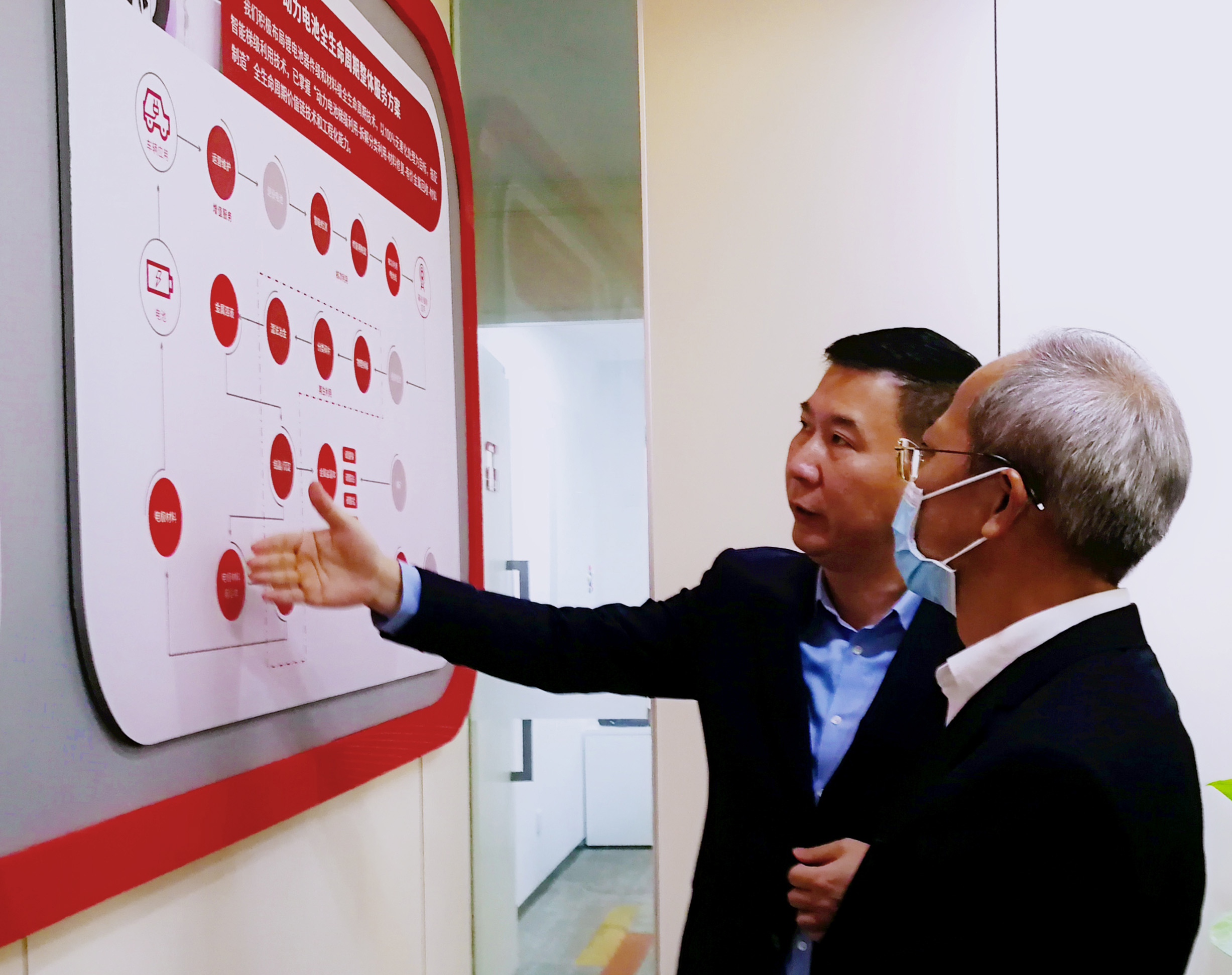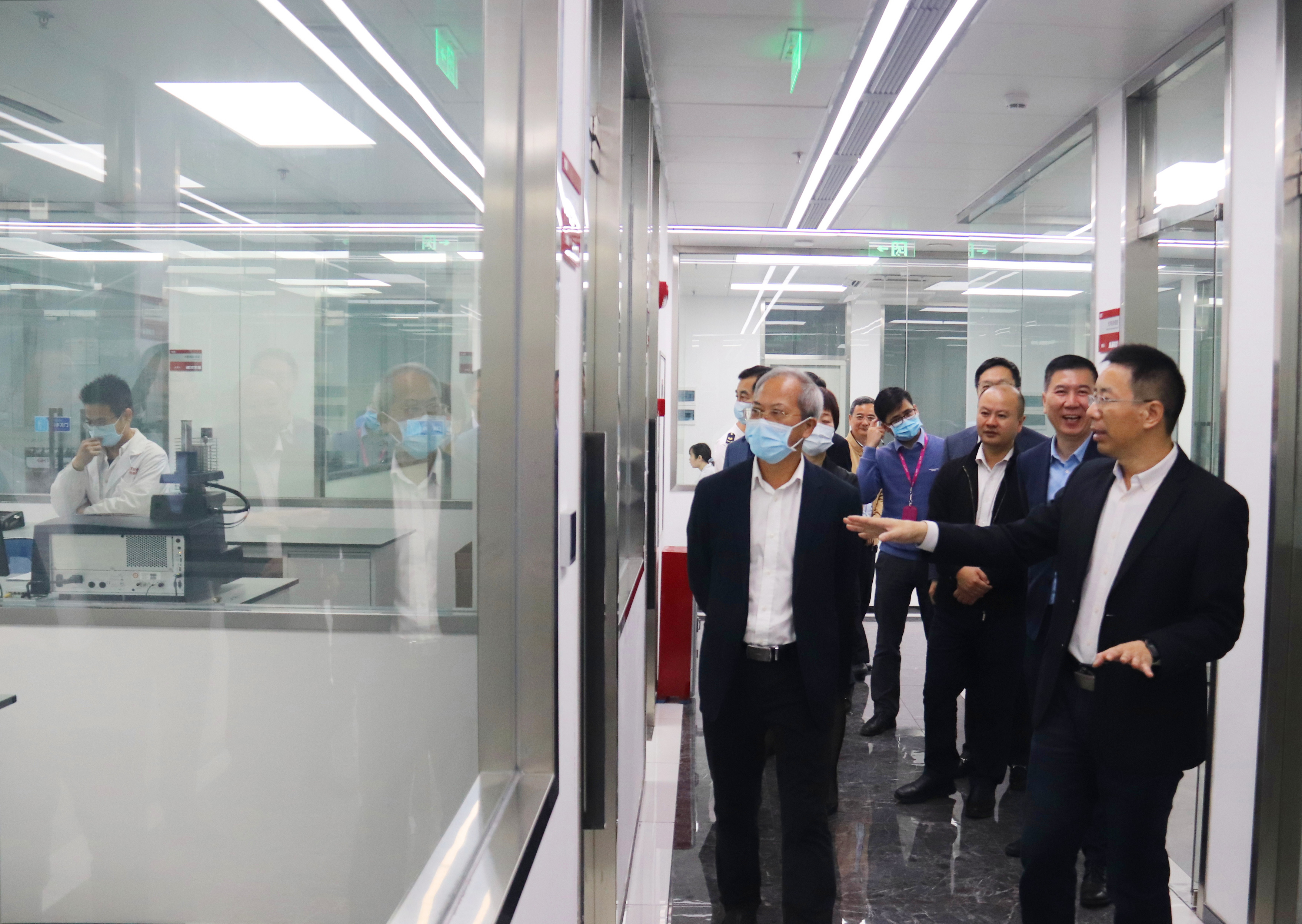 陳德俊區長一行首先重點參觀了光華科技坐落在廣州番禺創新科技園的國家企業技術中心,就光華科技的發展歷程、經營狀況、行業競爭力等做了詳細了解。在參觀中,鄭靭總裁就光華科技的產業布局、人才強企與可持續發展戰略進行整體匯報,闡述公司在5G、半導體、新能源材料與電池梯次利用等產業的未來規劃與發展訴求。