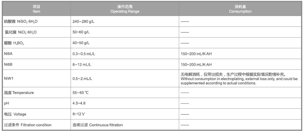 Ni6A:俗稱光亮劑,負責出光和填平。Ni6A不足時,出光速度變慢;Ni6A過量時,低電流密度區發暗,鍍層脆性大;